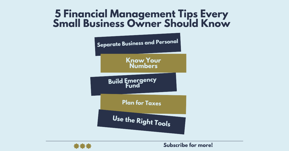 Running a business means wearing a lot of hats, but managing your finances well is one you can’t afford to drop. Here are five foundational tips every business owner should implement:
